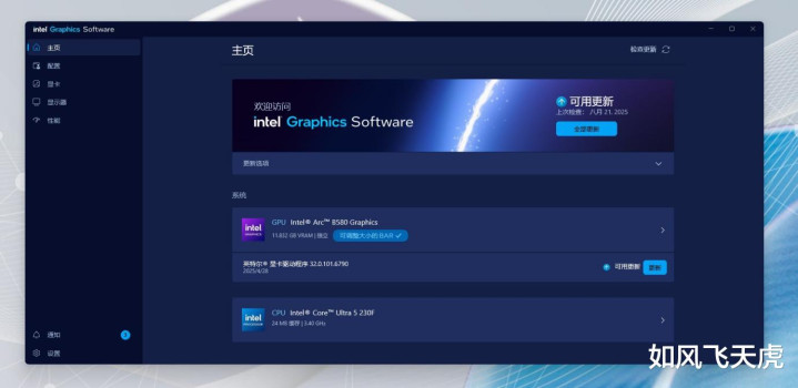 使用英特尔的软件,可以轻松配置,包括升级驱动等等。